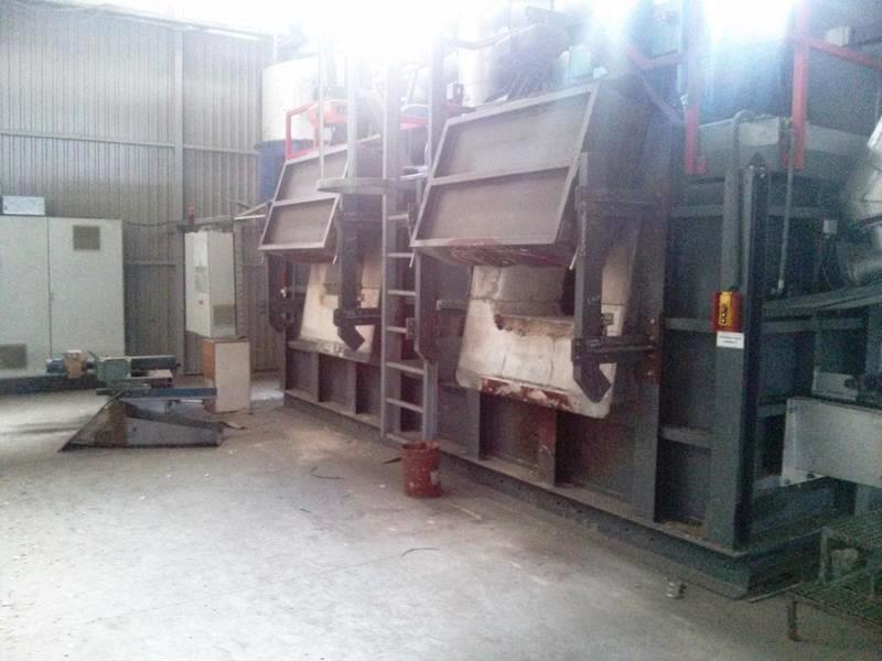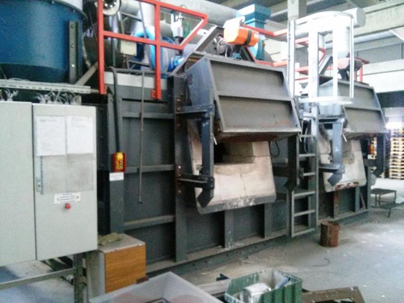 Container loading station from the agitator platform, special pump to support material movement, without affecting the molten aluminum, 2 x heat exchangers for improved energy consumption, second cabinet is heated with cleaned air afterburner (less oxide and 2.5% in favor of the plant), extensive spare parts package.